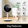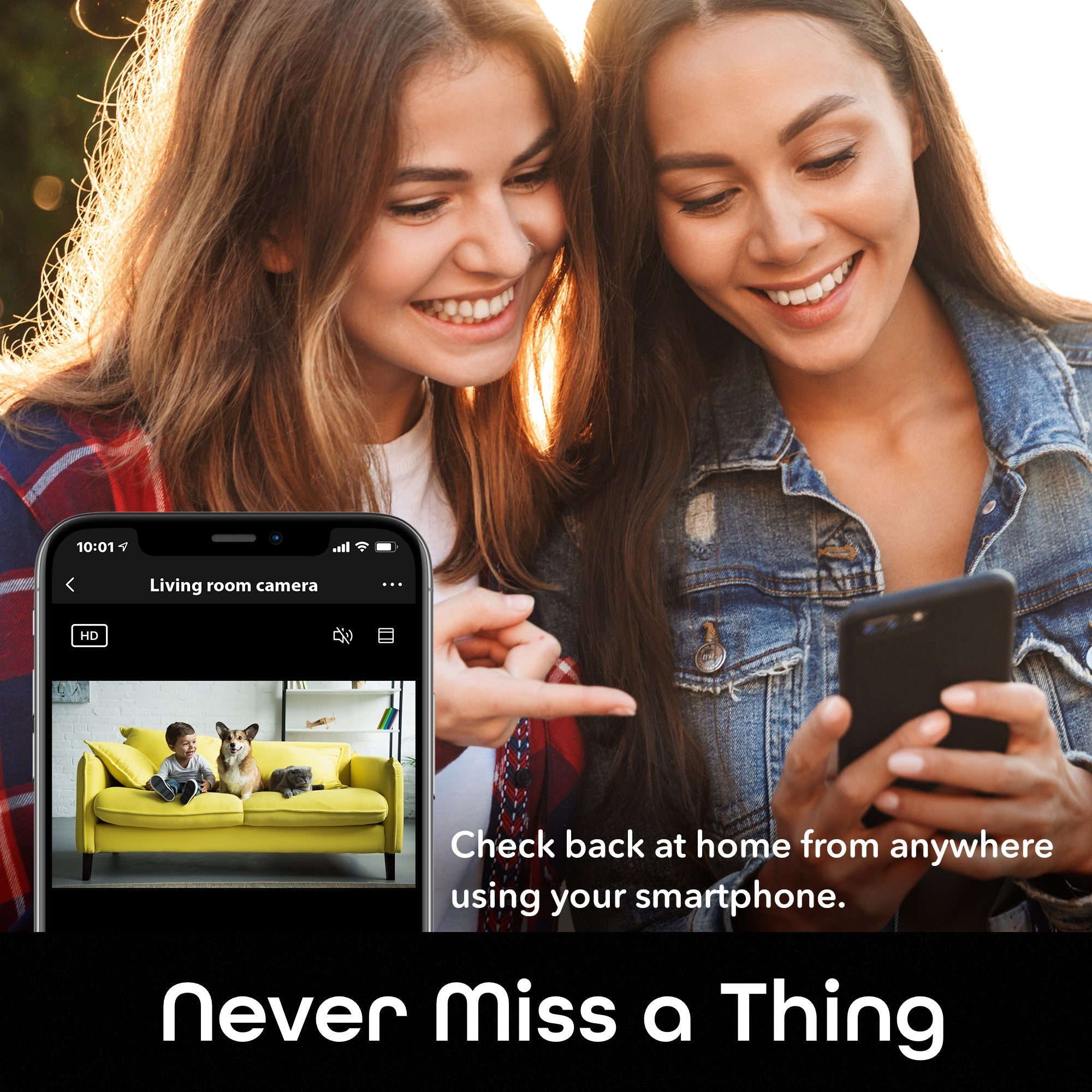 Check in at home from anywhere in the world with the Geeni Vivid Indoor Smart Wi-Fi Security Camera. Easy to set up and ready to use right out of the box! Just power on the camera, download the Geeni smart home app, and follow the easy step-by-step connection instructions. No hub required; it works with your existing 2.4 GHz Wi-Fi network to provide 24/7 live video streaming! See your home on your phone, computer, or tablet in 1080p HD from anywhere. These little cameras make a big difference in home security. Place them anywhere or stick them to most walls and ceilings for the perfect vantage point. Our cameras monitor your home 24/7 and send notifications to your phone instantly when motion is detected. 2-way communication speakers built in let you hear and respond to household members and guests. Compatible with any standard Micro SD card for recording and reviewing footage. Alerts on your phone: get motion alerts so you know if anything happens. Night vision done right: see the whole room at night in colorblind friendly grayscale! Your home is smarter with Geeni!