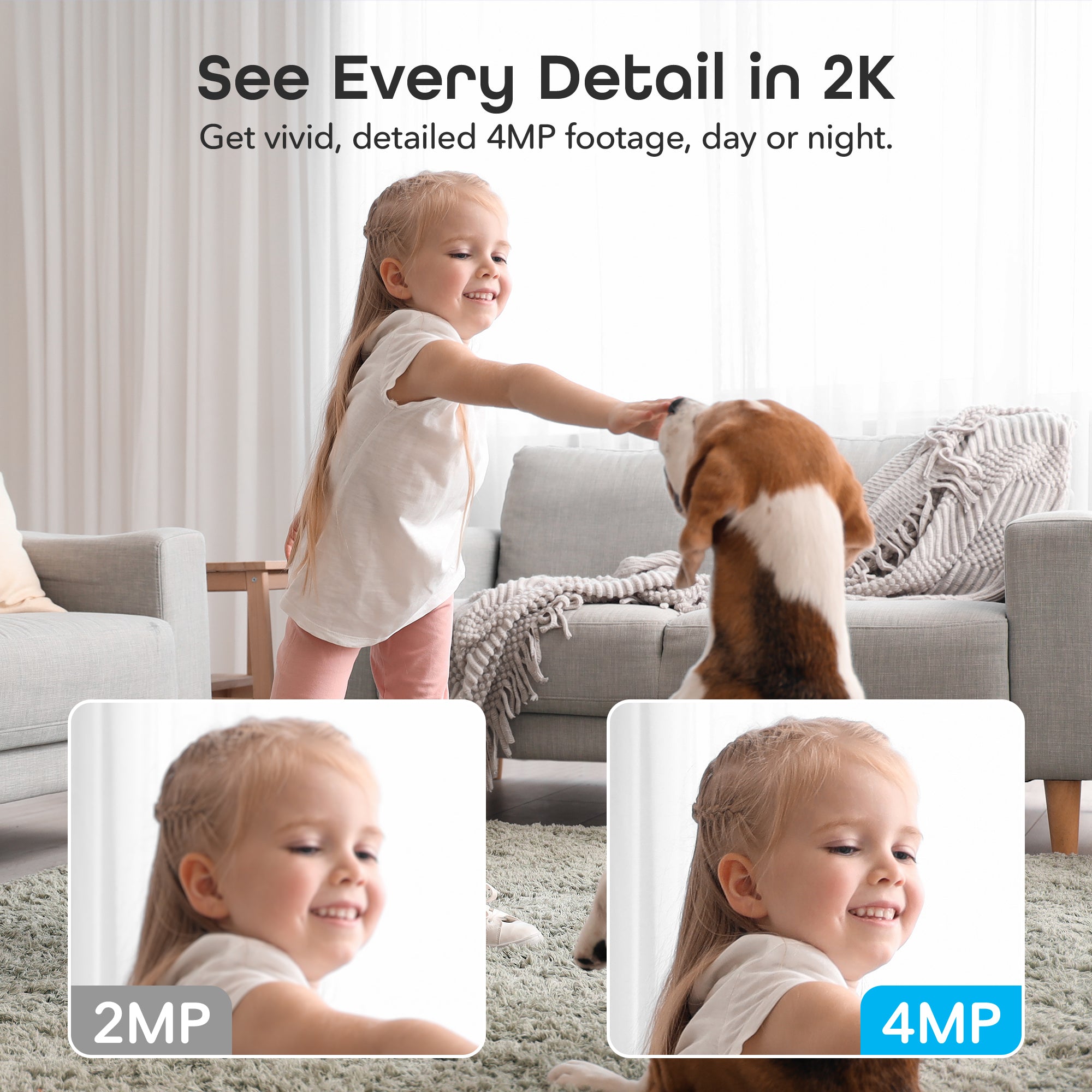 - Superior 4MP 2K Resolution: Experience crystal-clear 1440p Ultra-HD video that delivers sharper details and better zoom capabilities than standard 1080p cameras.
