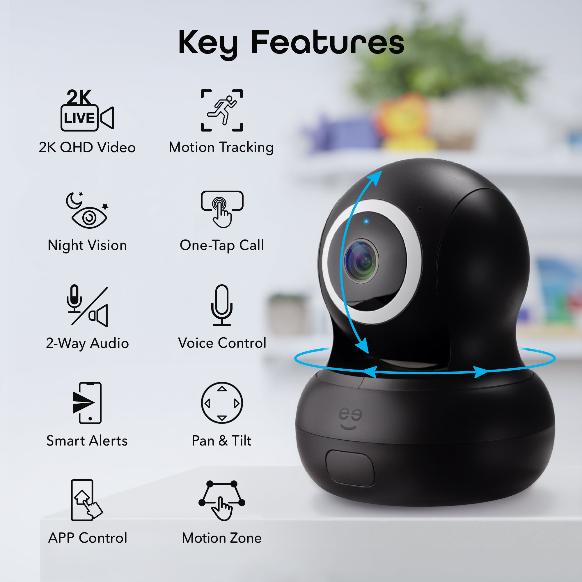 Geeni Sentinel Ultra 2k Auto-Follow Camera, Black